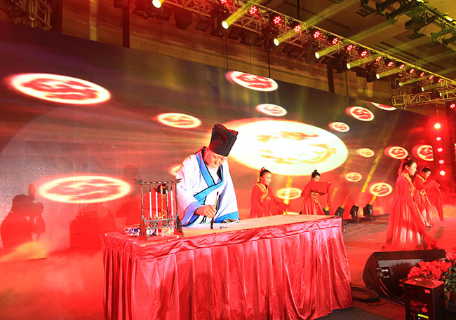 本次晚會采用中國傳統(tǒng)文化的主題,參會人員著中國風禮服入場,現場布置也透著濃厚的中國風味,迎賓大道的黃色地毯、道路兩旁的燈籠、鏤空的大紅門、綠瓦白墻的合影區(qū)……隨處可見的中國傳統(tǒng)文化元素讓參會人員欣喜不已,紛紛駐足拍照留念。