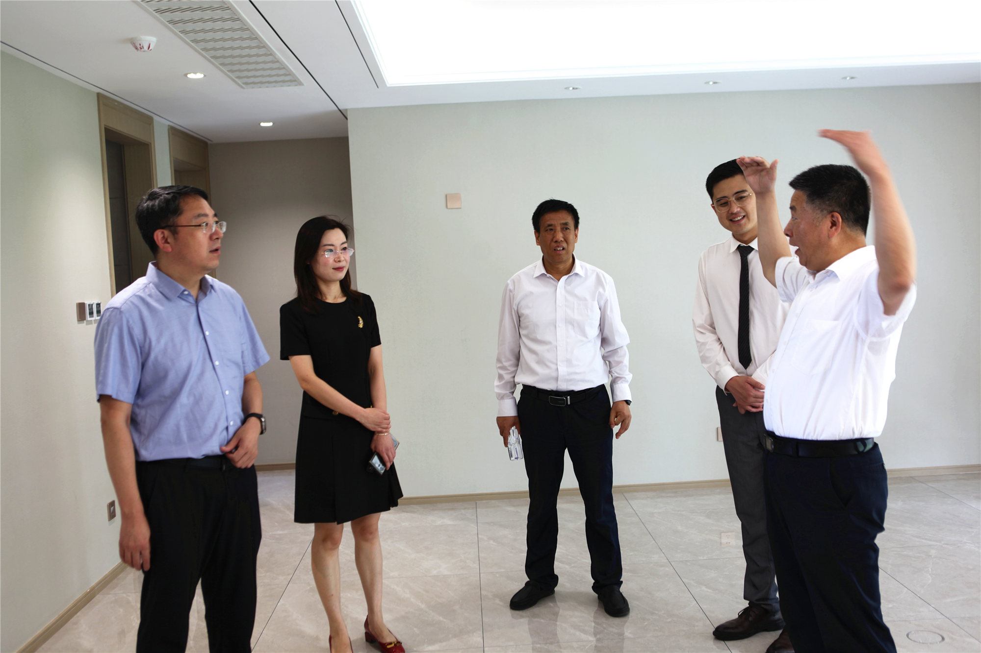 6月29日下午,山東省住房和城鄉(xiāng)建設廳二級巡視員都昌林、房地產(chǎn)管理處副處長李曉、臨沂市住建局城鄉(xiāng)建設服務中心主任孟慶民一行蒞臨金泰錦府參觀指導,公司有關領導全程陪同。